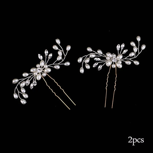 2PCS Crystal Pearl Hair Jewelry Wedding Hair Accessories